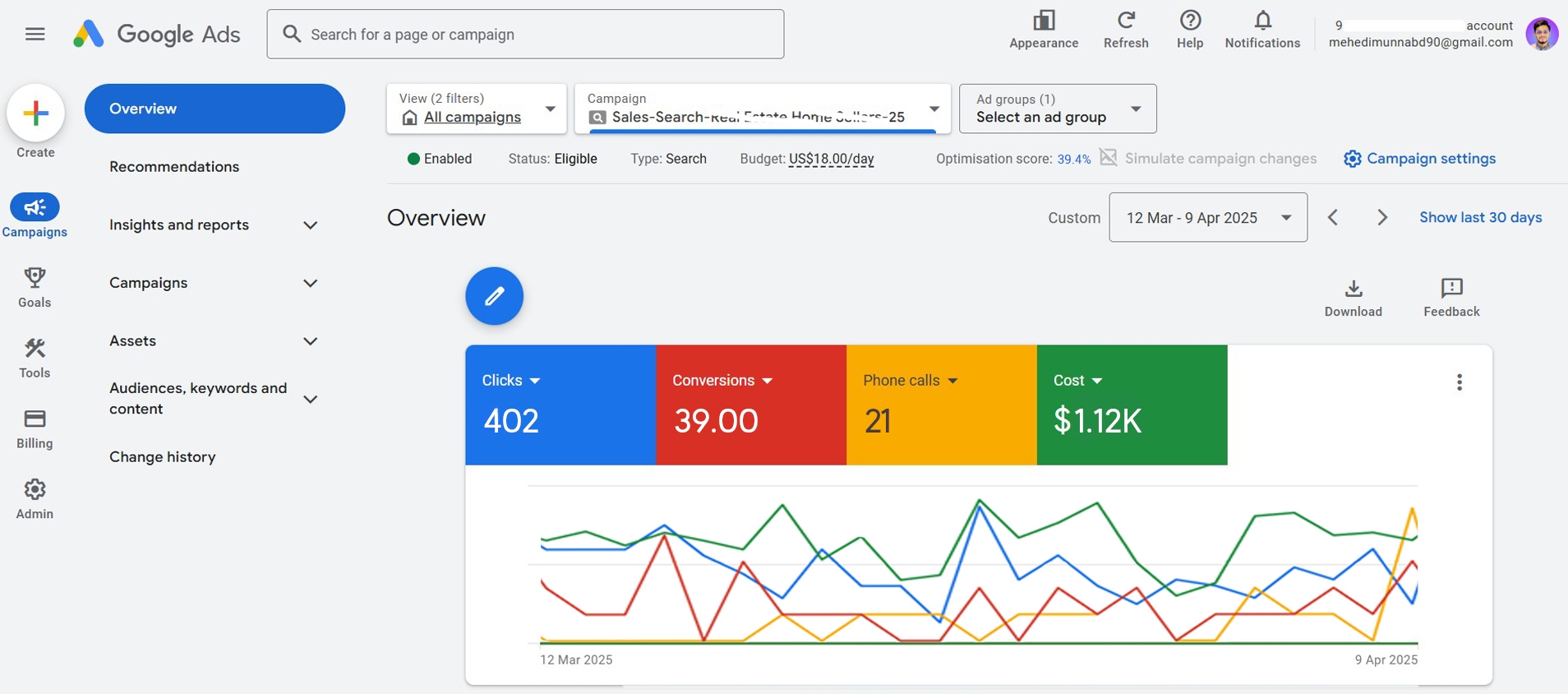 Outcome: Sweet Home Ltd moved from high acquisition costs and unclear performance to a clean, efficient, and scalable real estate funnel.